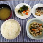 ●鶏肉の揚げ煮 ●キャベツ油揚げの煮浸し ●蒸しかぼちゃ ●ごはん ●お味噌汁